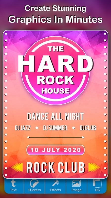 Create promotional posters, advertisement, offer announcements, cover photos on the go with amazing backgrounds, texture, effects, fonts, sticker and get the attention you want.