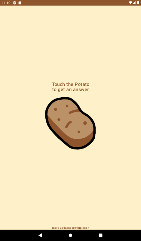 Get your definitive answer with just a tap! Don't leave room for doubts with endless questioning. The Potato simplifies your life to the maximum, offering straightforward and no-nonsense answers to all the questions on your mind. With a simple interface, just ask your question and tap the Potato for a clear verdict: a 'YES' or a concise 'NO.' From everyday dilemmas to crucial decisions, the Potato is always ready to be the impartial referee you need. Free yourself from indecision and experience the power of certainty with the Potato today!