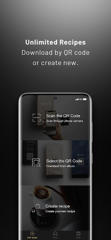Swipe up to update the 3 default recipes. After update it, no need to turn on APP, just follow the light guiding to brew new flavor.