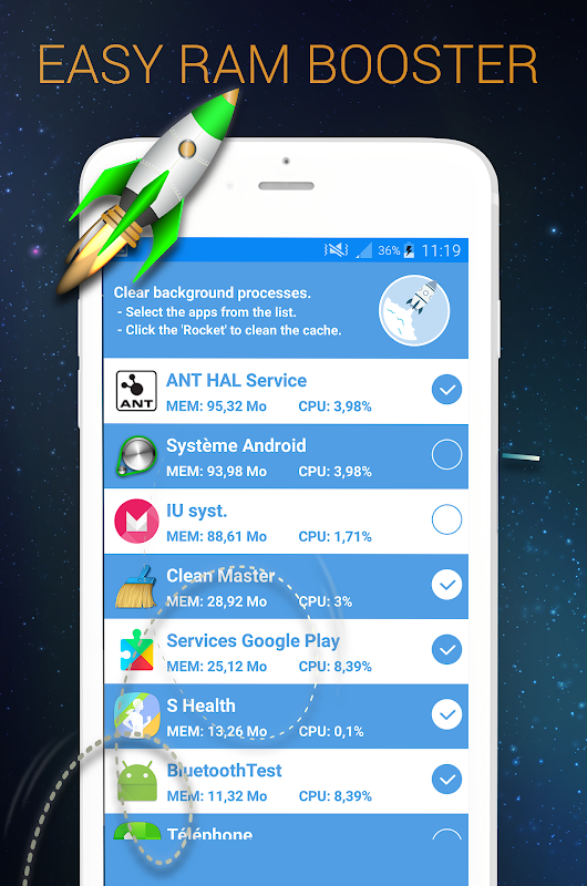 Clean & boost android memory and ram, speed up your phone and save battery power