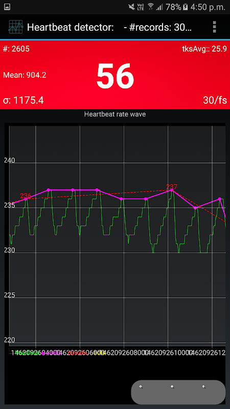 * After a few seconds the flash light reflected from your skin will be analyzed to trace the blood flow and extract heartbeat signal from it.