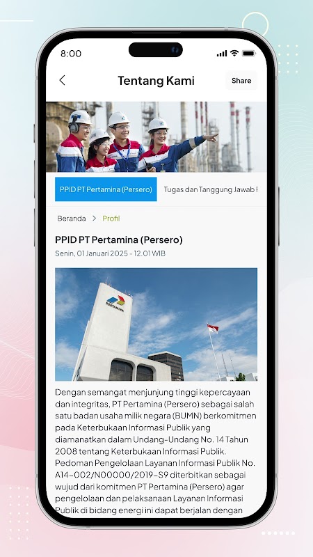 The Pertamina PPID application aims to provide informative and reliable public information services in accordance with applicable rules and regulations.