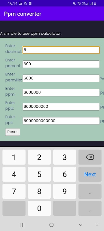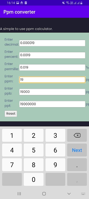 PPM converter helps you to convert PPM into other major units on user input. You just need to insert the value that you want to convert and the app will automatically convert PPM on user input.