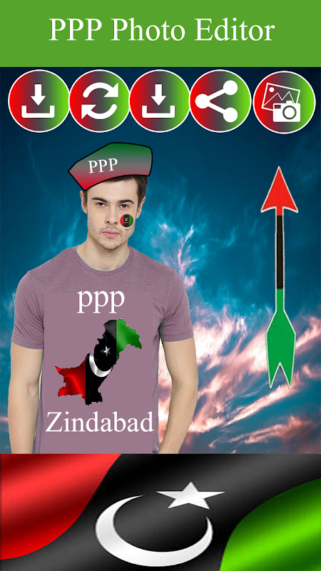 How to use Pakistan peoples party frame? Get the PPP editor, choose a picture from gallery or take a new one. select the PPP frame over the wide variety of PPP frames. Adjust the PPP flag on your picture, enable other settings for editing the picture with PPP editor. Save the editor picture directly to gallery and share the edited PPP Pakistan picture with friends.