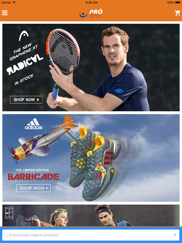 Esse é o App da Pró Spin. Somos apaixonados por Tênis e todos os esportes de raquetes de que se tem notícia. Aqui você encontra tudo que precisa para seu jogo na palma da sua mão! E tudo muito simples: Pediu, chegou!