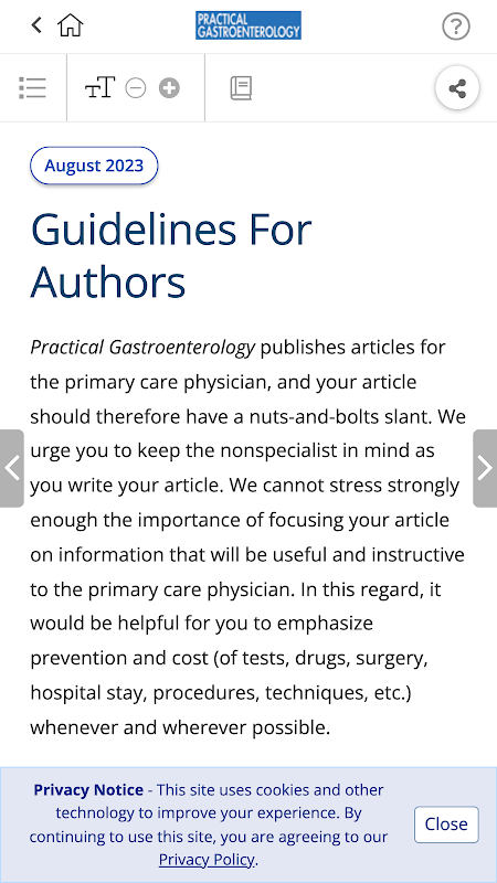 Practical Gastroenterology, A Peer Review Journal. Diagnosis and management of GI diseases, presented in a series format. Practical, useful information for the healthcare professional.