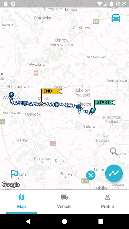 This is a mobile version of PractiQS vehicle fleet monitoring application.