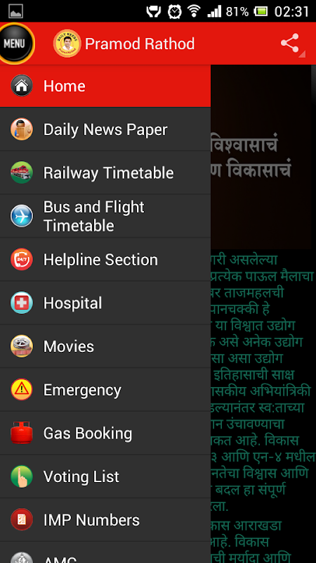 This is Daily need app, in this application user can find Newspapers, Railway, Bus, Movies updated timetable, all imp contact number, online doctors, 24*7 Medical shopee , Songs,Helpline numbers, inforamtion about Pramod rathod and many more....