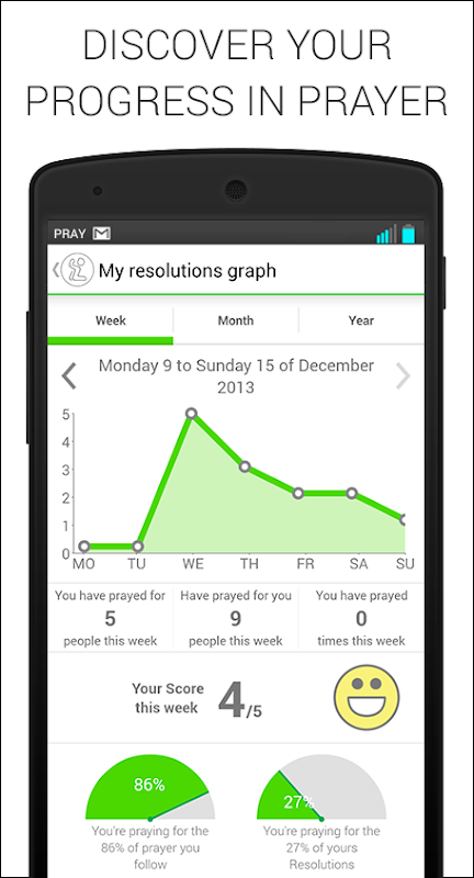 -See your weekly progress on your personal resolutions,