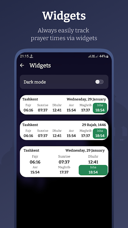 • Access the most precise prayer times for cities in Uzbekistan.