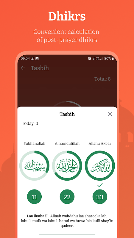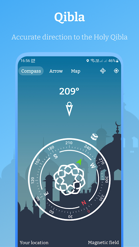 • Convenient compass indicator to easily find the Qibla.