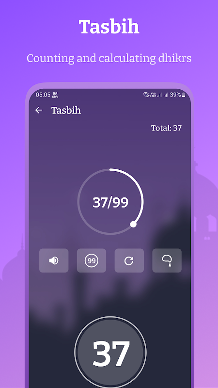 • Notifications with soothing muadhin voices or short ringtones.