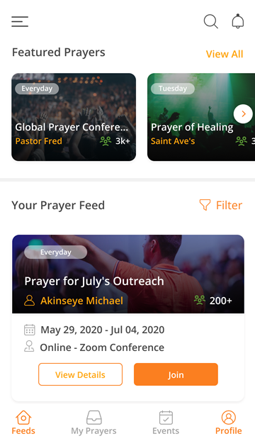 PrayerConnection allows a virtual or connected praying session by connecting with a within app Zoom integration.