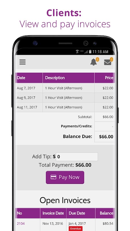 ✔️ Pay invoices (if your pet care provider has enabled credit card processing)