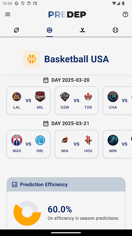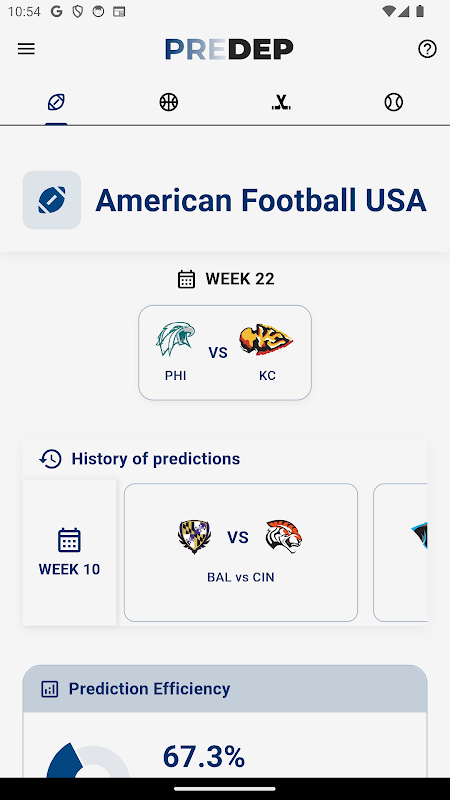 Predep uses advanced machine learning technology to give you accurate predictions game results. Our app not only shows you the most likely predictions, but also allows you to see a detailed history of how our predictions have performed over time, helping you evaluate the accuracy and reliability of our algorithms. Giving you all the information necessary to make informed decisions. Always stay one step ahead with your ideal companion for every season.