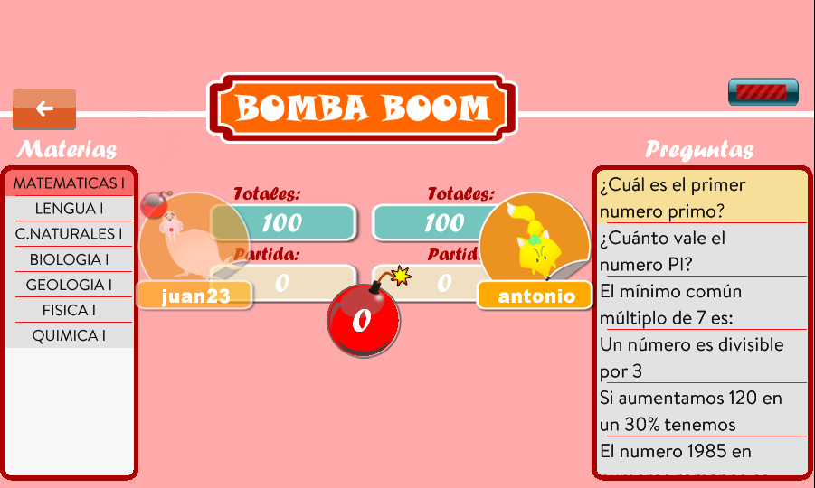 El juego consiste en conseguir las gemas de los demas contrincantes enviandoles preguntas mediante una bomba.