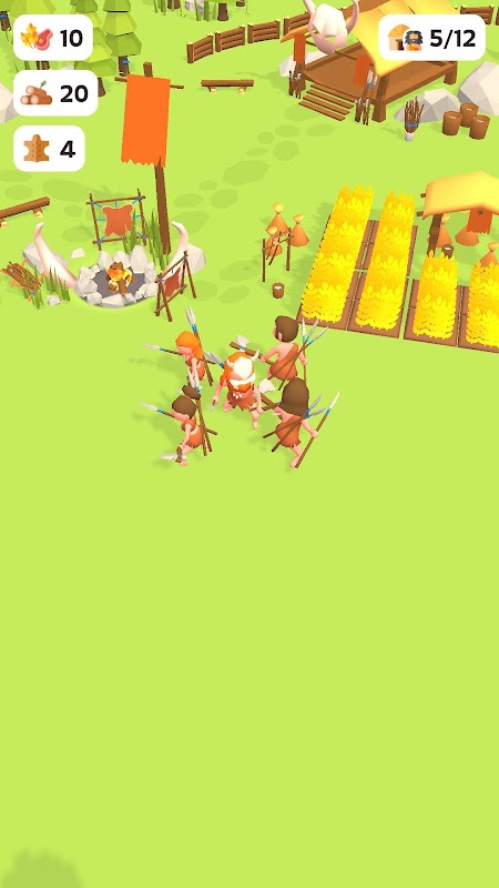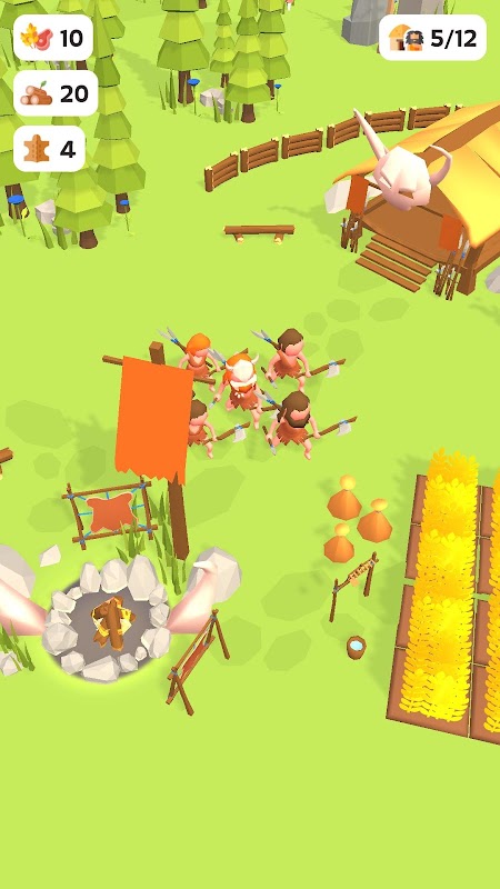 The prehistoric human builds his camp and his squad.