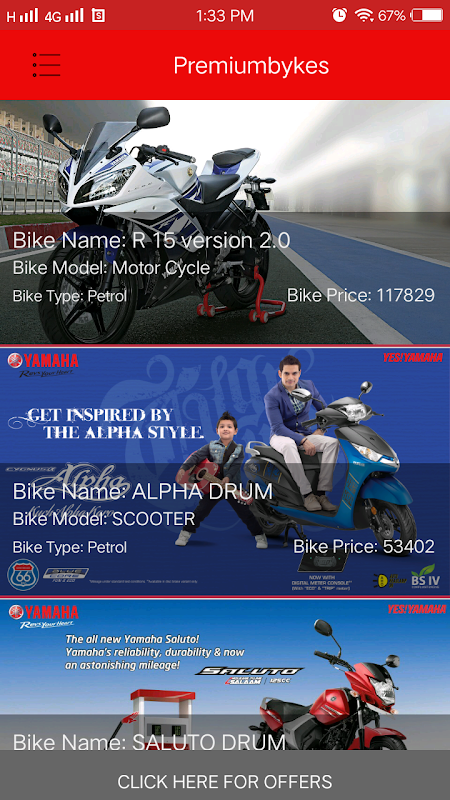 This app has all details of YAMAHA bikes at Yamaha Showroom, Kurnool, so as the customer can check it in detail. A unique feature of Bike Service Booking is provided.
