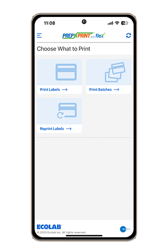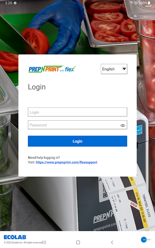 Note: To use this application, you will need a flex Printer, Daydots™ direct thermal labels, and access to the flex Website to enter your food, template, location, and account settings details. Visit Ecolab Food Safety Solutions to get started: www.prepnprint.com/flex