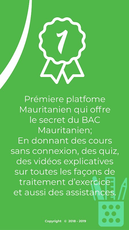 Nos applications aident aux candidats mauritaniens et au voisins de la Mauritanie à approfondir leur connaissance en leur offrant une plateforme riche en ressources et aussi leur assister avec des vidéos explicatives et des quiz. Venez découvrir notre monde et goûter à la réussite, le tout est gratuit.
