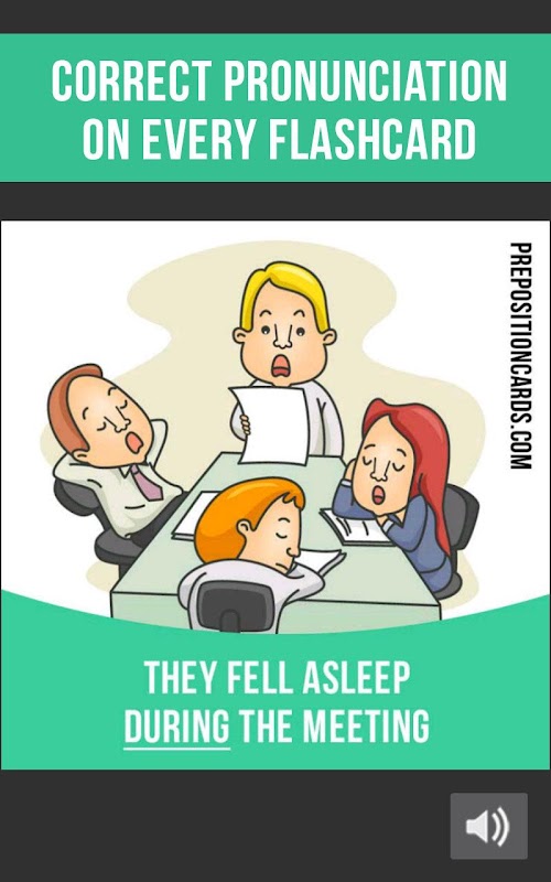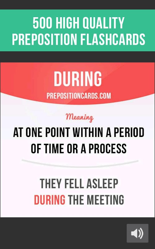 In our app you can find 500 flashcards containing English prepositions, example sentences, pictures and correct pronunciation.