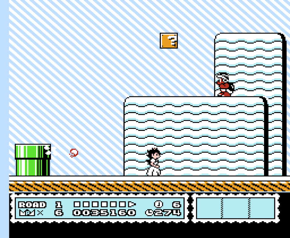 The game world is subdivided into multiple levels. The levels feature distinct visual themes: for example, "Desert Land", contains sand-covered levels with pyramids; "Giant Land", contain obstacles and enemies four times their normal size.
