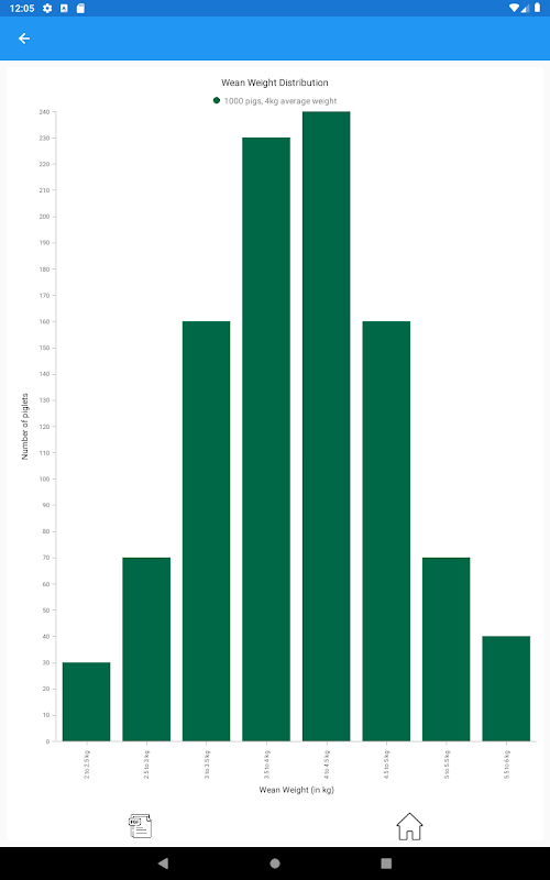 When you open the App you can choose from a variety of tools such as the ability to plot your own weaning weight distribution, benchmark your own performance data, as well as estimate the average daily feed intake and feed conversion ratio for nursery pigs. Charts can be saved as PDF files and e-mailed to yourself for future record.