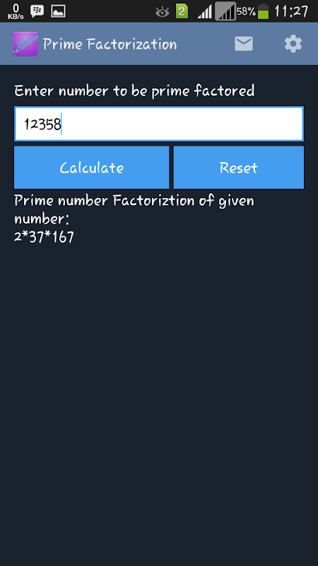 This Prime Factorization app converts the given number into product of prime numbers. The app can be also used for testing if the given number is a prime number (returns a message saying “It’s a prime number and cannot be factorised in to prime factors” if given number is a prime number) This app gives results in a very quick time. Very useful App for school and college students.