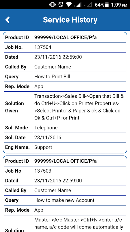 It gives you instant access to your Pending Messages / Services with current status along with Service history.