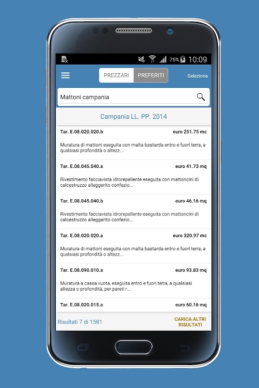 Con PriMus PREZZARI hai tutto il mondo dell’edilizia nelle tue mani! Puoi cercare voci di E.P. nella banca dati dei materiali e prezzari d’Italia, selezionare, conservare, condividere o inviare i dati sul tuo PC per il computo.