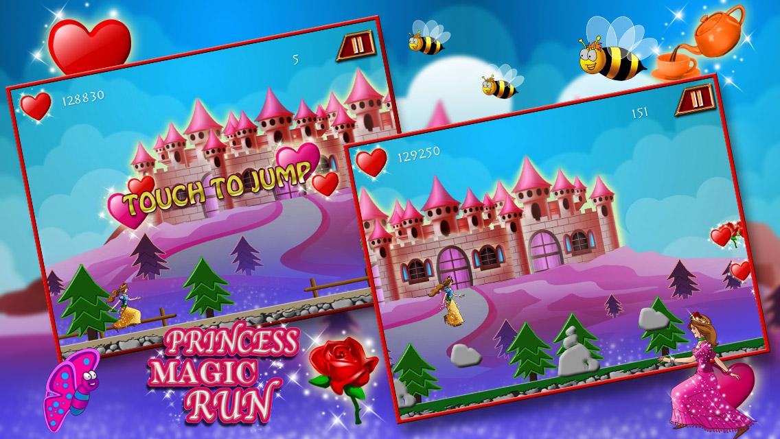 Princess Magic Run is a wholesome family game, which is fun and easy to play. Simply touch the screen to make the princess jump and cross over the obstacles - beware of the bees!