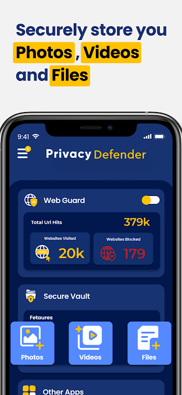 * Photo Vault – Photo Vault encrypts photos, videos, and files to secure mobile stored personal ID and business data.