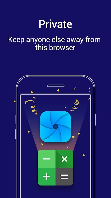 Private Browser is the best privacy keeper on web browsing. Private Browser can disguise itself to be a calculator on your phone and when you input your PIN in the calculator it turns to a full featured browser with super speed.