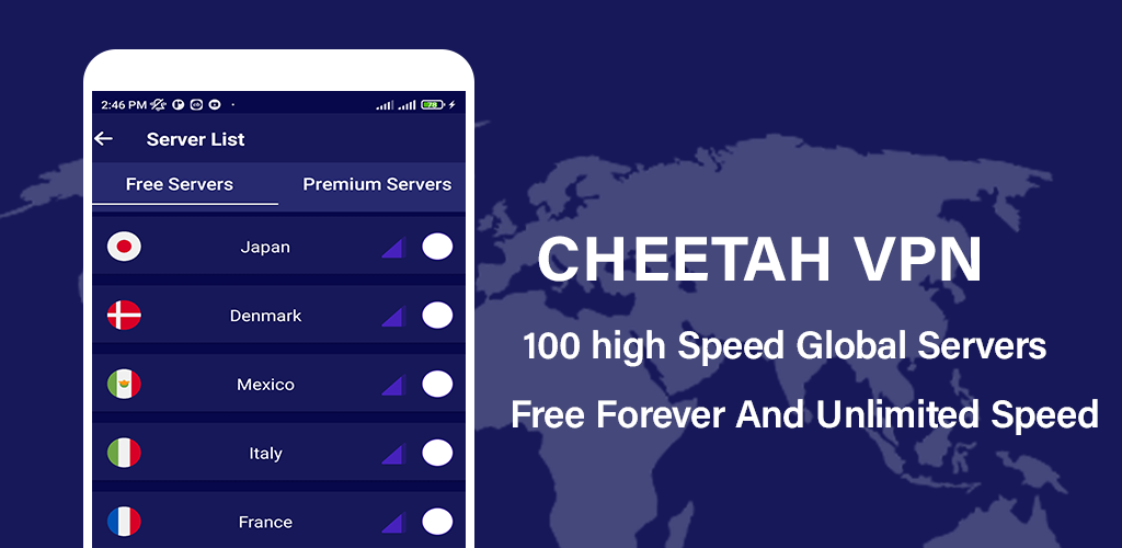 Cheetah VPN offers anonymity, security, privacy and freedom on public internet.