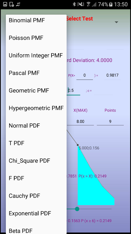 - Probability Mass Functions / Probability Density Functions, coupled with Cumulative Probabilities are plotted with user configurable settings.