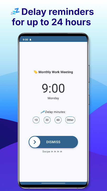 ✔ Snooze: Easily delay reminders for up to a day