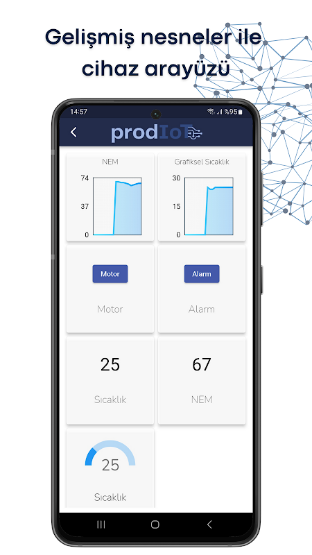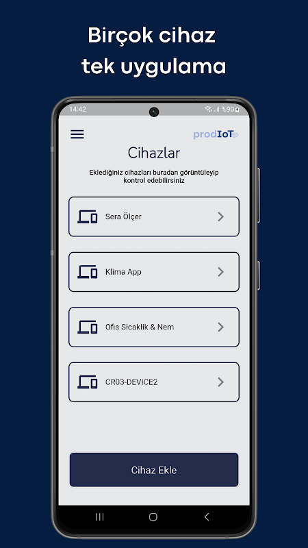 Easily add ProdIoT productized devices and start controlling your devices. You can follow all incoming historical data and alarms with their details on the reports page. With multi-device support, you can manage devices from different manufacturers with a single application.