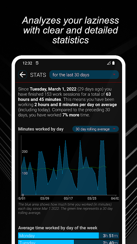 What this app is about is challenging you to work and study harder and tracking your work habits. You'll earn/lose ranks depending on your performance, earn achievements and track your productivity over time, so you'll know how long you worked on what and during which days of the week and hours of the day you're at your most productive.