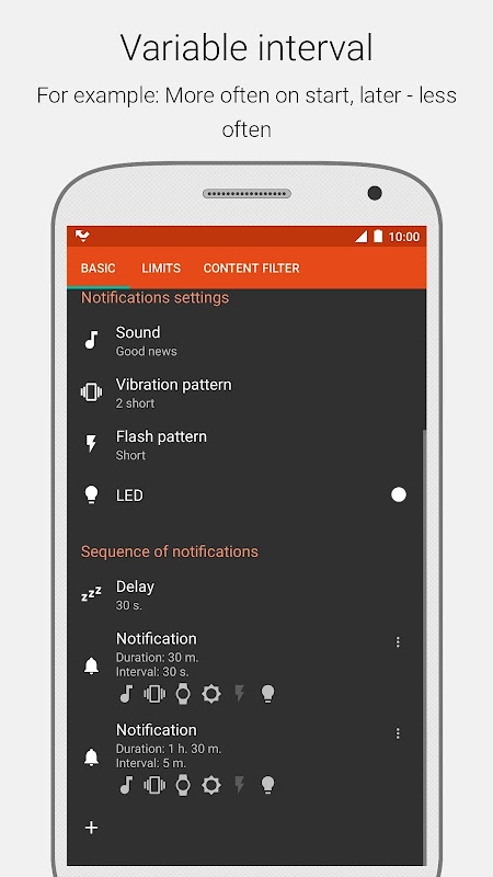 ★ Customizable notification schedule: order of notifications, repeat interval and repeats count.