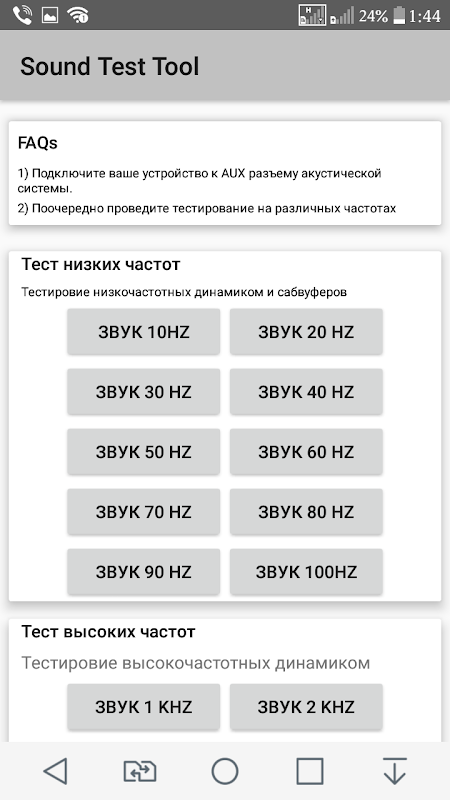 the program of testing of acoustic systems.(speakers, tweeters, subwoofers ...)