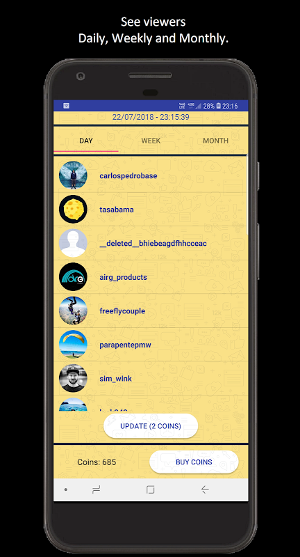 Just click the update button, and find out your daily, weekly, monthly stalkers.