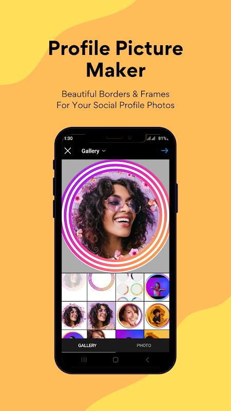 You just need to tap a few times on your screen to give your DP an attractive look. Profile Pic Maker is packed with loads of beautiful DP frames to beautify your profile picture.