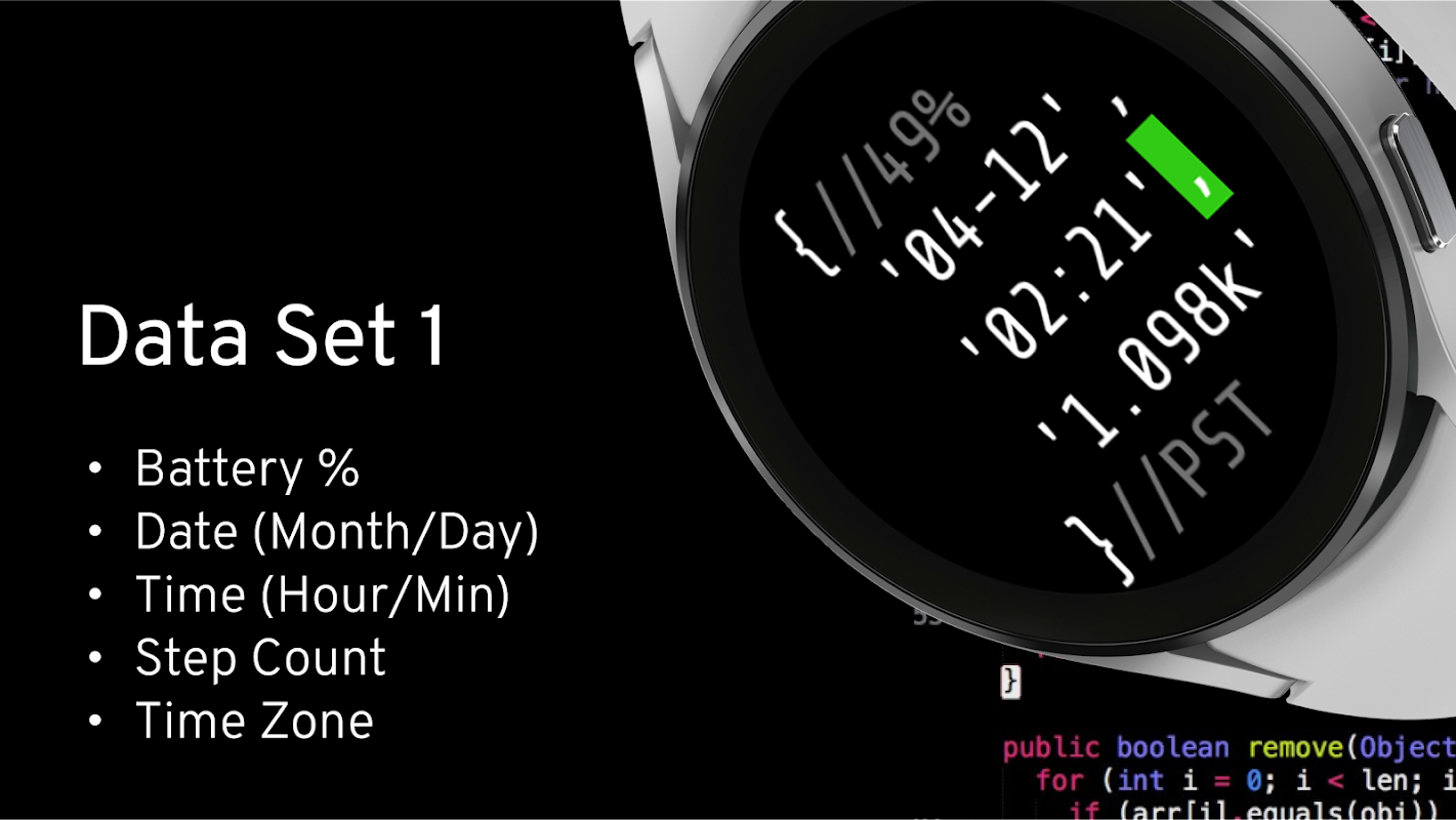 The perfect watch face for programmers, IT developers and coders – innovative, interactive, fun. 2 live cursor controlled data sets – just move the cursor to the very left by tilting your wrist to access the 2nd data set. Design includes live cursor, code comments, syntax highlighting, curly braces, single quotes, … you name it!