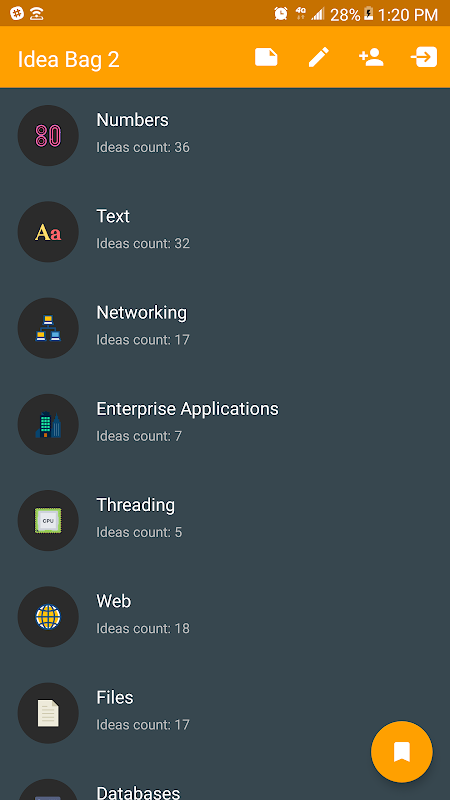 This app was developed to provide programmers of all proficiency levels ideas for pet projects to work on when they are looking to increase their proficiency in a particular programming language. Idea Bag 2 is ideal for hands-on learners and the ideas featured in it can be programmed in popular programming languages like C#, Java, Go, Python, Ruby, JavaScript, and PHP for either the Web, MacOS, Windows PC, Android, Windows Phone or iOS. Just fire up your favorite IDE, start a new project and begin work on any of the projects featured in this app.