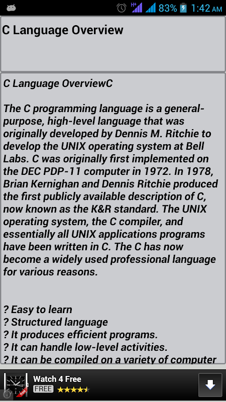 Programming Teacher is a app to learn programming in a easy way.Its like a programming teacher in your hand.By using this application it is very easy to learn programming and improve your programming skills in a very short period.You can also test your knowledge using test skills in different programming language.It covering almost every programming language including C,C++,Java,Android,C-sharp,PHP,HTML etc.The best features you can get full program code and also search a particular program from the list.