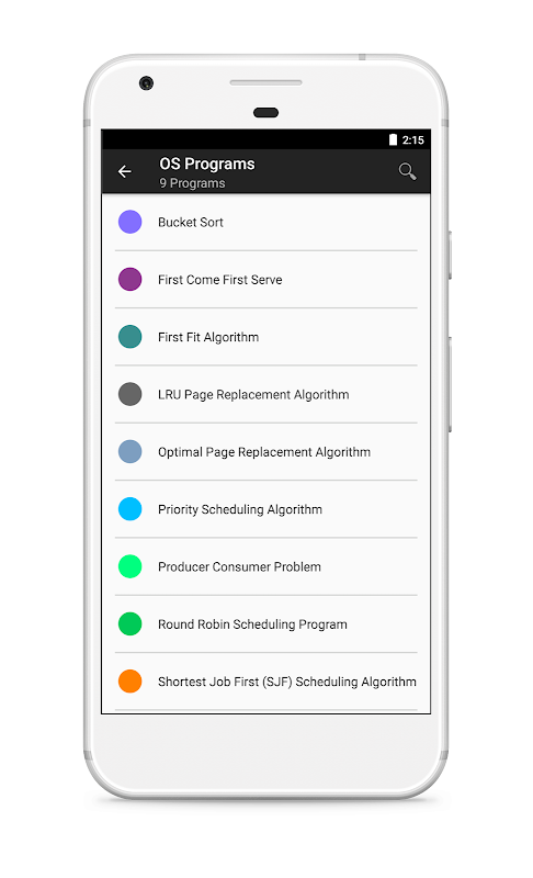The app contains C, C++ basic programs which you may come across during your education time. It also contains java programs, System programming Programs, Assembly programs, Operating System programs, Artificial Intelligence - Prolog programs, Computer Graphics Programs and many more.
