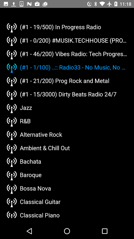 We choose channels from SHOUTcast radio stations.