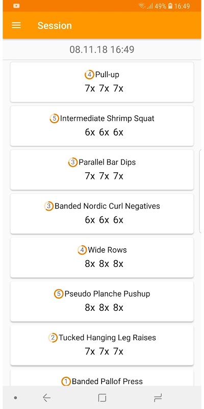 • Workout with exercises which can be leveled up