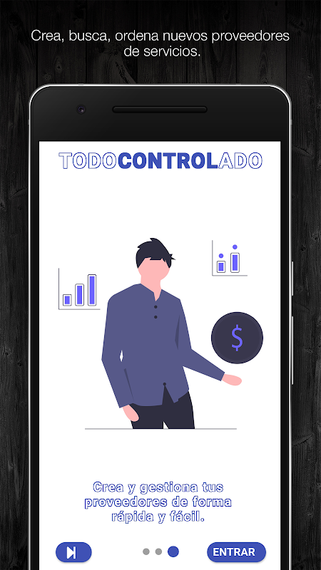 TodoControlado te ayuda a tener un mejor control de tus gastos, muchas veces nos preguntamos: ¿En qué me he gastado mi dinero? De una forma fácil y cómoda, cada vez que compres algo, pagues una factura o realices un gasto. Simplemente entra en la aplicación y comienza a crear nuevos registros, selecciona una categoría de gasto, introduce la cantidad y listo, opcionalmente puedes hacer una foto al ticket de compra o ponerle un comentario para ayudarte a identificar mejor tus gastos.