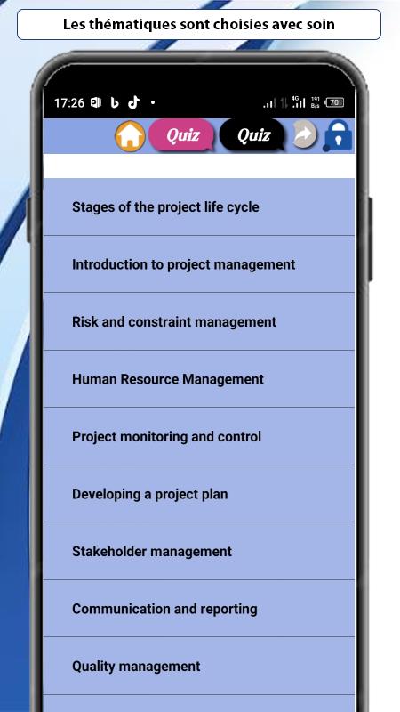 Keywords: learn project management, free project management course, project management quiz, project management tools, project management application, project management tutorial, project management methodology, project manager, planning, monitoring, evaluation , fence, French, English, Spanish, German, Chinese.